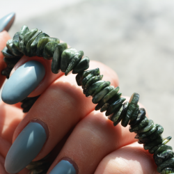 Seraphinite chips bracelet purifies and enhances our aura by removing chakra blockages. It increases intuition and assists in accessing self-healing energy.