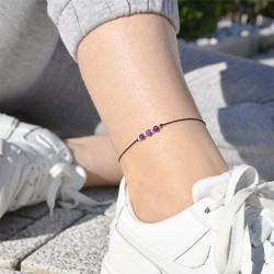 Friendship ankle bracelet with amethyst crystal and silver detailing - black cord.