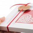LACE PICTURE TWO HEARTS on red background
