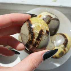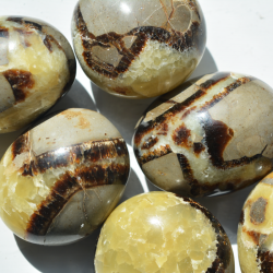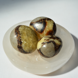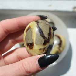 Septarian, also known as the dragon stone, is a combination of aragonite, calcite and limestone crystals. It can serve as an amulet of protection and inner awakening. It helps us replace old habits with new ones and brings change into our lives.