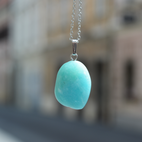 Amazonite crystal necklace is an energy jewellery that increases concentration, eliminates exhaustion and stress, and strengthens the ability to communicate well.