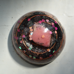 Orgonite half-sphere with pink opal, hematite and moonstone, protects against the intrusion of negative energy and brings peace and harmony to the your space.