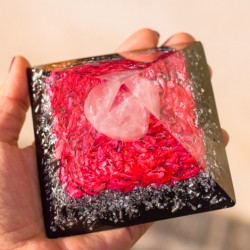 All orgonites are carefully hand-made from resin, copper wire, metal particles and clear quartz crystals. They activate and cleanse the negative energy that is within us and hinder us from living a fuller and happier life. Added crystals and semi-precious stones direct orgone energy to a specific area of life where you would like to achieve transformation and positive change.