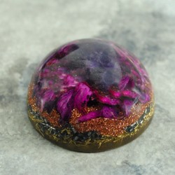 Orgonit s kristalom AMETIST krepi zavest ter prebuja občutek za objektivnost in pravičnost. Spodbuja zmernost na vseh področjih, predvsem pri prenajedanju in pretiranih čustvenih odzivih.
